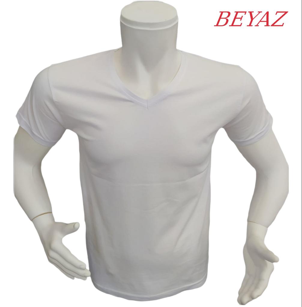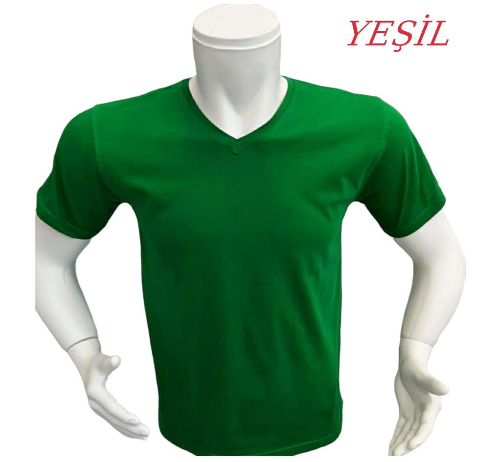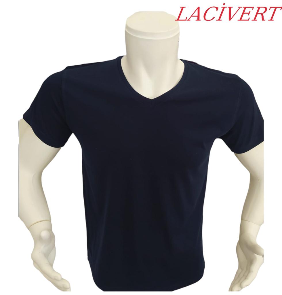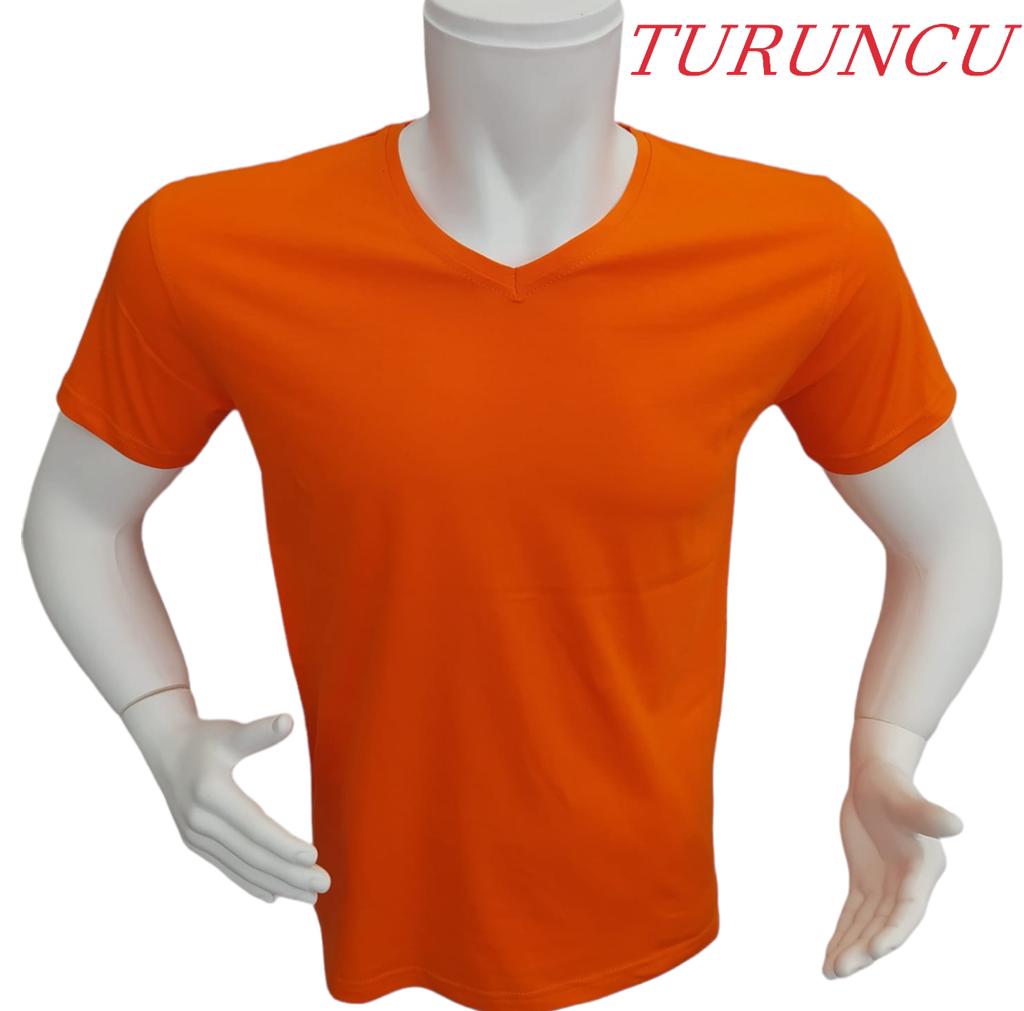 V Yaka Pamuk Penye Likralı 1.Kalite T-Shirt-Logonuz Baskılı